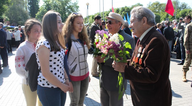 Юнаки та дівчата поклали квіти на знак пошани до великого подвигу воїнів Другої світової війни. Поспілкувались з ветеранами війни. Зробили фото напам’ять.