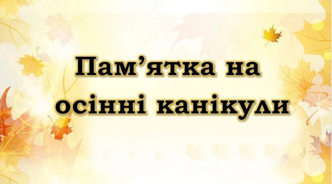 З метою запобігати нещасним випадкам, травматизму прошу вас ознайомитись із правилами техніки безпеки під час осінніх канікул, з обов’язковим їх дотриманням: