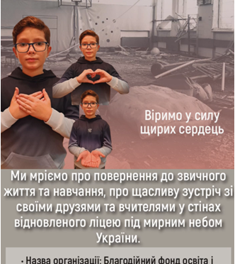 ? Якщо ви можете допомогти нам у відновленні другої домівки дітей та відбудові зруйнованого закладу освіти, то зробіть це донатам на рахунок наукового ліцею. Будемо вдячні за будь-яку допомогу! Віримо у силу щирих сердець небайдужих людей.